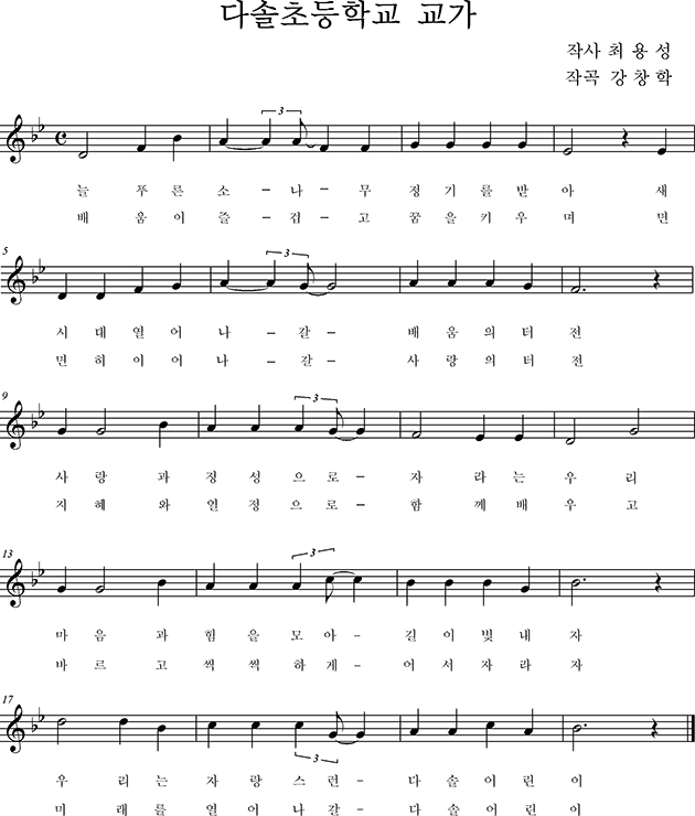 언제나 푸른 마음과강인한 의지로건강하고 곧게 자라는다솔 어린이의 미래를 상징함.